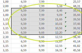 Data blocks with up to 8 columns can be copied from tables such as Excel and pasted into the editor. In the example below, a 4-column data block is inserted.